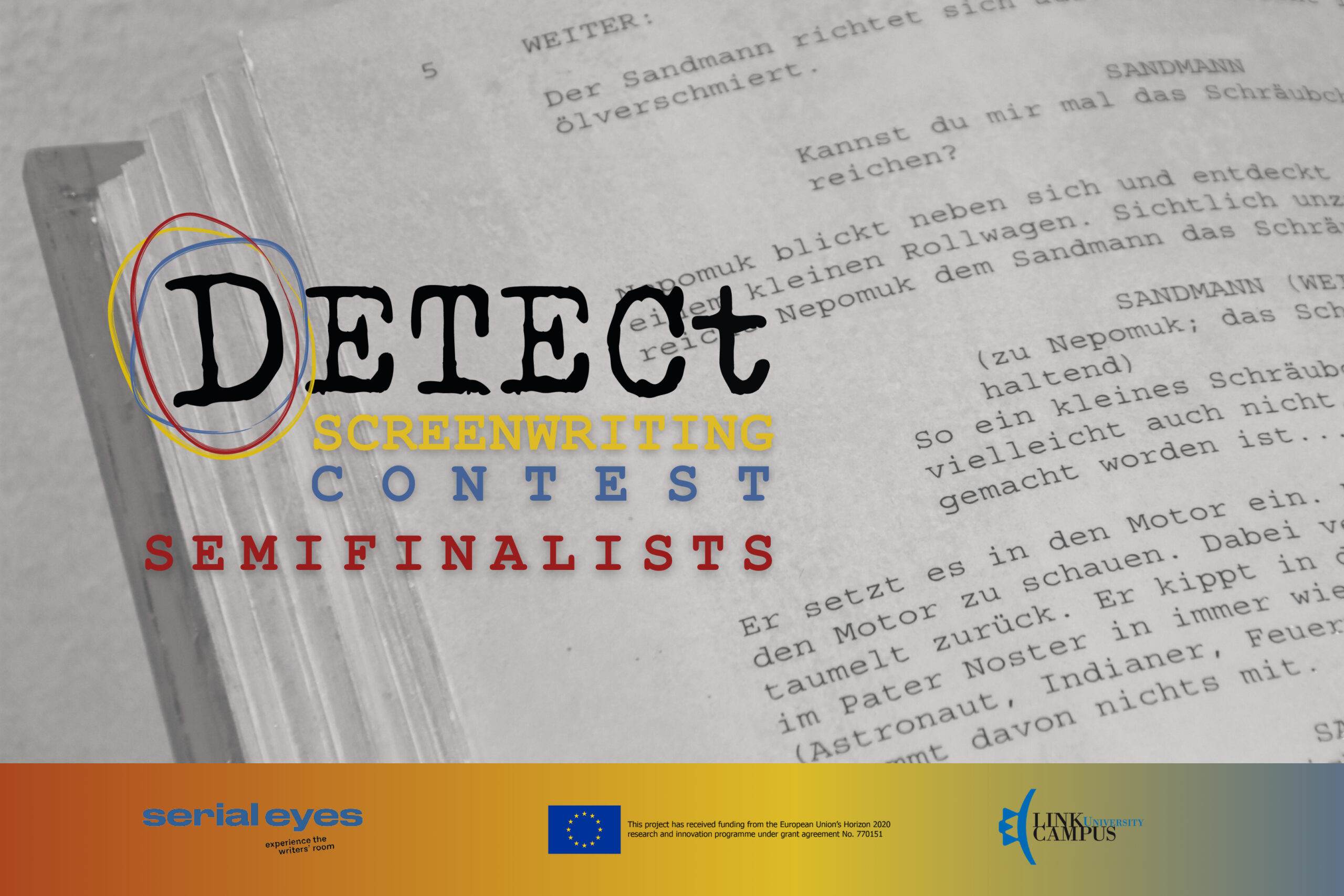 We are glad to announce that the first two stages of the selection process for our Screenwriting Contest are now completed. Two large committees formed by professional readers and members of the DETECt project have carefully examined the 250 proposals that were submitted and the ten semi-finalists have been selected. Their projects will compete for the main prize award by our International Jury, as well as two special mentions awarded by a jury of DETECt members and a jury of students of Link Campus University (Rome).