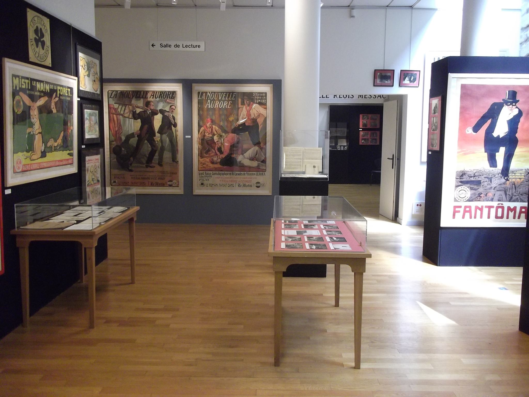 Each part of the exhibition is accompanied by original editions, booklets, and posters, that complete the content of a series of spotlights on specific phenomena. Cinema and TV series are also explored, even if literature remains at the heart of this exhibition from the collections of the Bibliothèque des littératures policières.