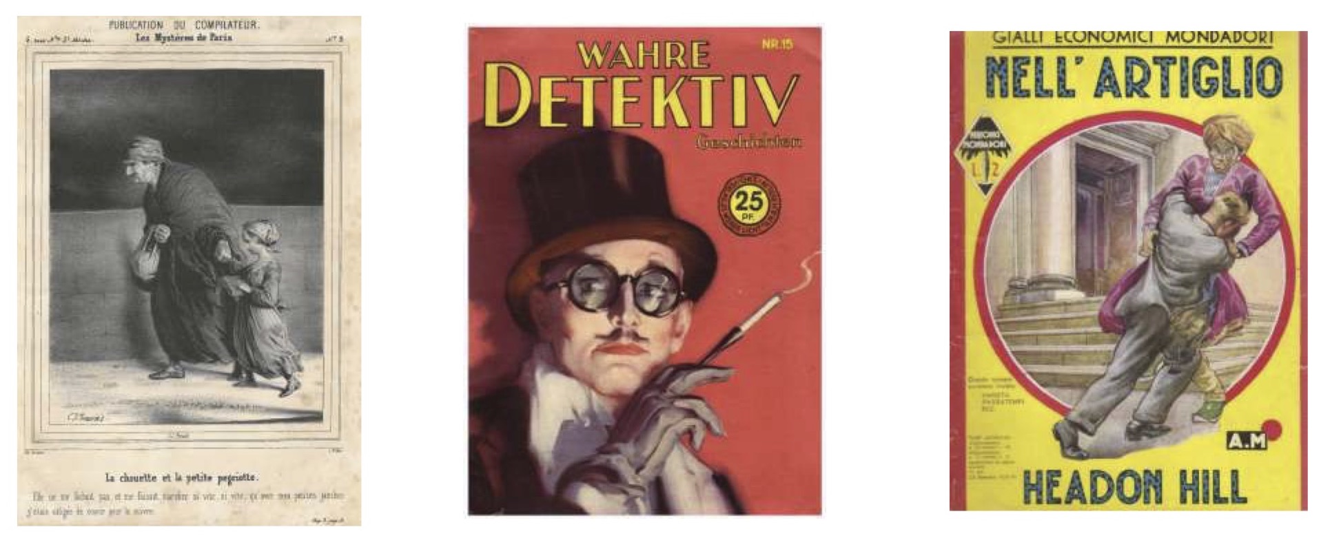 For works of crime fiction have circulated throughout Europe, generating versions adapted to local tastes. French, English, American, and, today, Scandinavian works have thus played a role in homogenizing the collective imaginations. Some countries, such as Germany at the beginning of the 20th century and Italy in the 1960s have played the role of conduits. Others, such as Spain and Greece, have shown an incredible ability to appropriate the genre. Likewise, during the Cold War, the Eastern European countries continually contrasted their values with those of the fiction produced by the enemy bloc. Thus, through exchanges, adaptations and imitations, crime fiction has given a common form to the fears of Europeans and to their way of considering modernity. Far from any authors’ pantheon, it is this circulation of the forms and patterns of crime fiction that this exhibit aims to render.