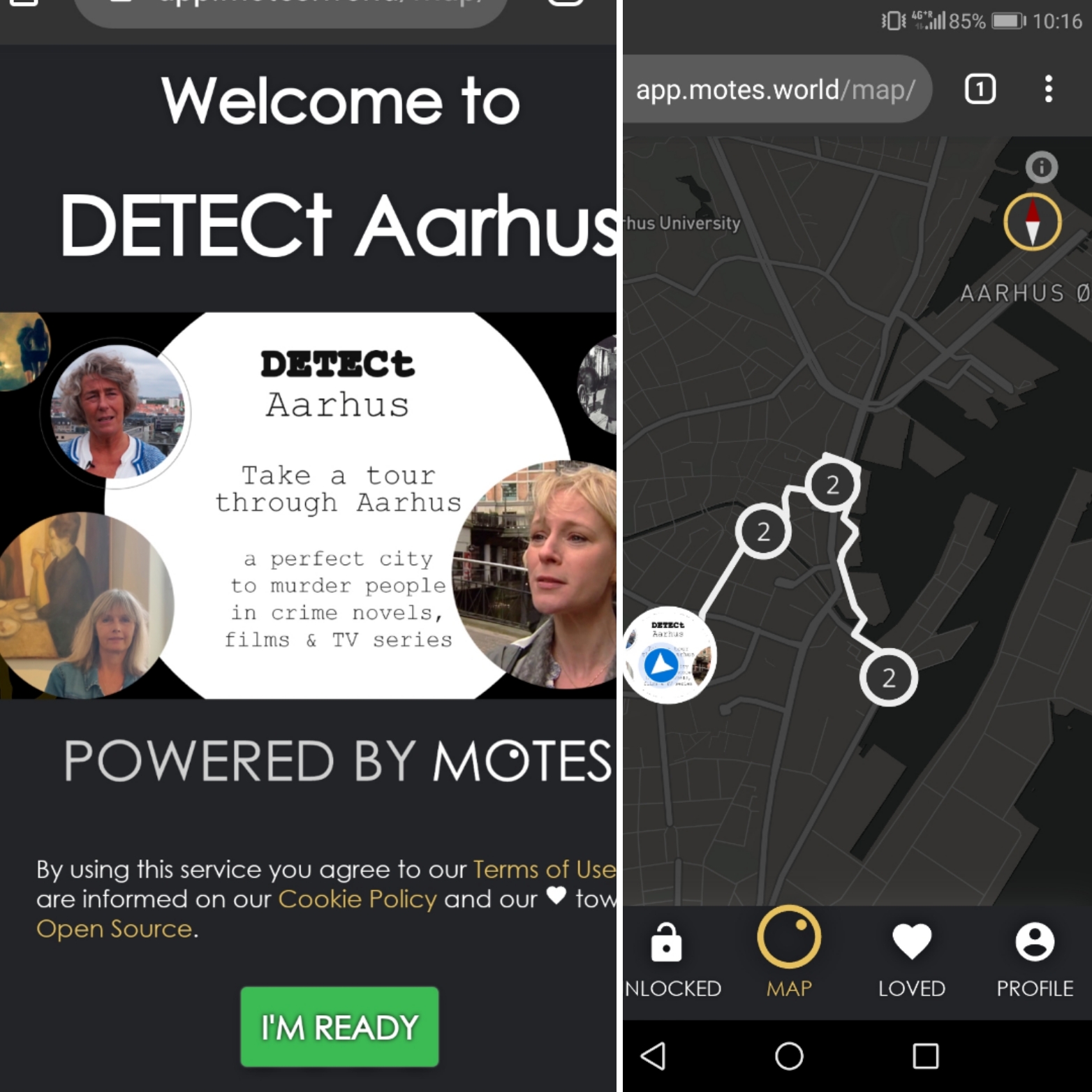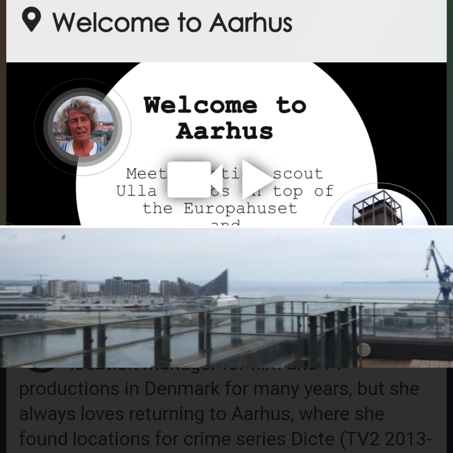 The second day of the Euronoir conference started out with a field trip from Aalborg to Aarhus to test the trial version of the DETECt App. The DETECt web-app is a screen tourism experience, currently developed by Aarhus University in cooperation with VisitAarhus. In the trial version, the conference delegates could explore Aarhus on a 1.5 hour walk that not only introduced them to Denmark’s second biggest city, but also to films, books and television series which are set and/or produced in Aarhus. The app features videos, audios and pictures about the crime TV series Dicte, the upcoming film Undtagelsen (The Exception), the film Lev Stærkt (On the Edge, 2014) as well as on Aarhus’ history as a centre of silent film production. On the tour users can, for example, meet Elsebeth Egholm, the author of the famous Dicte novels that were adapted for television – the most internationally renowned crime story from Aarhus. The content offered on the app will be expanded in the next months, building on the feedback from the trial period.
